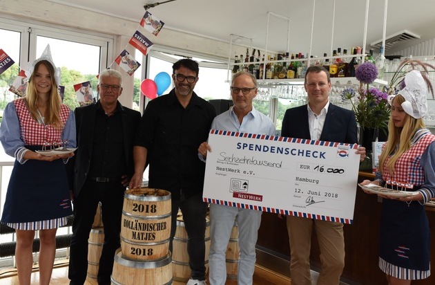 In den Niederlanden ist es seit jeher Brauch, dass das erste Matjes-Fass versteigert und der so erzielte Erlös einem guten Zweck gespendet wird. Diese Tradition wird auch in Deutschland fortgeführt, mit dem Unterschied, dass das Fass heute in Hamburg symbolisch versteigert wurde. Bereits im Vorfeld haben deutsche und holländische Fischereien gesammelt, so dass Reinhold Beckmann, als Vertreter und Gründer der Hamburger Initiative NestWerk e.V., einen Spendenscheck über 16.000 EUR entgegen nehmen konnte. Der Verein NestWerk e.V. setzt sich seit 1999 für Mädchen und Jungen aus strukturschwachen Stadtteilen Hamburgs ein und initiiert altersgerechte, verlässliche sowie kostenlose Sport- und Freizeitangebote. Ziel des Vereins ist die Förderung sozialer Kompetenzen und das Ermöglichen echter Perspektiven und Chancen auf eine Teilhabe an der Gesellschaft. Mit vielfältigen Partnerschaften hilft NestWerk Kindern und Jugendlichen den Armutskreislauf zu durchbrechen.