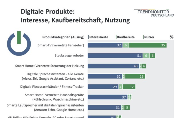 Trendmonitor Deutschland: Verbraucher an digitalen Trendprodukten interessiert, beim Kauf aber oft noch zurückhaltend