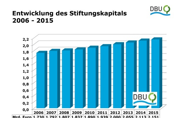 Zur Finanzsituation erklärte Dittrich, dass die DBU auch in der sehr schwierigen Situation an den Kapitalmärkten aufgrund ihrer langfristigen Anlagestrategie ausreichende Mittel erwirtschafte. So habe sie 2015 einen Ertrag von 96,1 Millionen Euro (126,8) nach Abschreibungen und Verwaltungsaufwendungen erzielt. Das Vorjahresergebnis sei dabei das beste finanzielle Jahresergebnis in der Geschichte der DBU gewesen. Dittrich: "Obwohl Anlagen bester Bonität inzwischen in erheblichem Umfang negative Zinsen verzeichnen und damit überhaupt kein Geld mehr zu verdienen ist, erzielen wir noch immer so hohe Erträge, dass wir unsere Reserven ausbauen können." So konnten dem Stiftungskapital 38 Millionen Euro als Rücklage zugeführt werden, das damit jetzt 2,15 Milliarden beträgt. "Wir werden auch in den nächsten Jahren unverändert Fördermittel von rund 50 Millionen Euro ausschütten können", so Dittrich weiter. Insgesamt gingen im Vorjahr bei der DBU 675 Anträge und Projektskizzen ein (831). Die Bewilligungssumme blieb mit 49,4 Millionen Euro (52,8) "im Zielkorridor", 247 Projekte (274) wurden gefördert. Damit hat die Stiftung seit Aufnahme ihrer Fördertätigkeit im März 1991 über 1,6 Milliarden Euro für mehr als 9.200 Projekte an Fördermitteln bewilligt und damit mehr Geld in den innovativen Umweltschutz investiert als sie seinerzeit als Stiftungskapital erhalten hatte (1,288 Milliarden Euro).