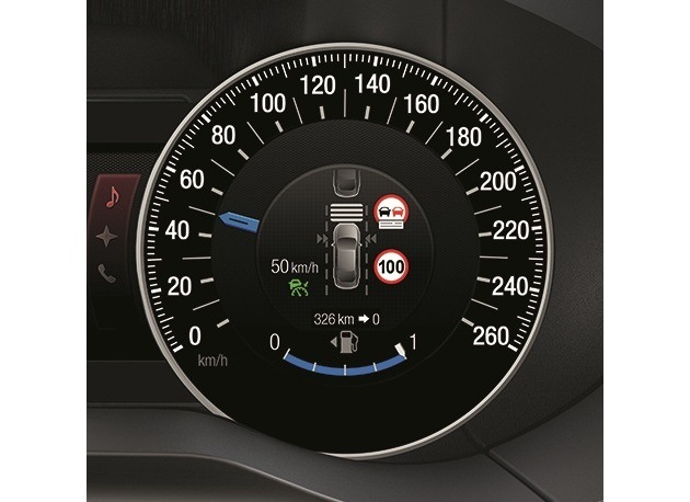 Der Intelligente Geschwindigkeitsbegrenzer arbeitet in einem Bereich zwischen 30 und 200 km/h und nutzt dabei auch die Informationen des Navigationssystems. Vorteil: Dies ermöglicht die korrekte Einhaltung der jeweils geltenden Tempolimits selbst dann, wenn die Abstände zwischen zwei Verkehrsschildern besonders groß sind - beispielsweise auf Landstraßen.