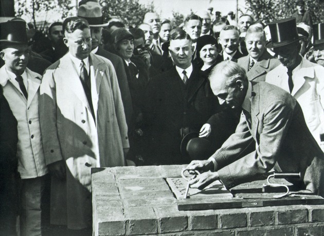Zwölf Millionen Reichsmark investierte Ford in die neuen Fertigungshallen, die eine Grundfläche von 33.000 Quadratmeter umfassten. Zur Grundsteinlegung am 2. Oktober 1930 war neben dem damaligen Kölner Oberbürgermeister und späteren Bundeskanzler Konrad Adenauer auch Henry Ford I anwesend. "I know that the German people will make a good job of it", sprach der Automobil-Pionier den Deutschen sein Vertrauen aus.