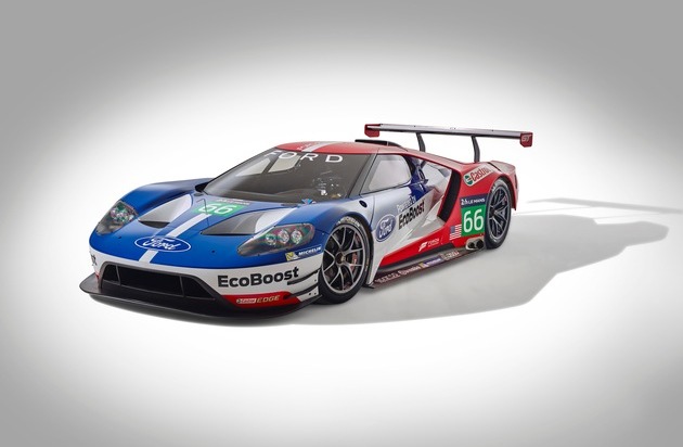 Die Rennversion des Ford GT basiert auf dem Ford GT-Serienfahrzeug, das der Konzern im Januar 2015 auf der Motorshow in Detroit als technologisches Leuchtturm-Projekt präsentiert hatte. Der neue Ford GT-Supersportwagen steht an der Spitze des High-Performance-Modellprogramms - er hat eine aerodynamisch ausgefeilte Kohlefaser-Karosserie und setzt neue Standards in puncto Leichtbau und EcoBoost-Motorentechnologie. Mit einer Leistung von mehr als 600 PS ist sein 3,5-Liter-Sechszylinder-Bi-Turbo das bisher stärkste EcoBoost-Serienaggregat überhaupt. Die Kraftübertragung an die Hinterräder übernimmt ein siebengängiges Ford PowerShift-Doppelkupplungsgetriebe. Hochmoderne, besonders leichte Verbundwerkstoffe kommen zum Einsatz. So besteht zum Beispiel die Sicherheitszelle ebenso wie die Karosserie aus Kohlefaser, die vorderen und hinteren Rahmenstrukturen werden aus Aluminium gefertigt. Das Ergebnis: Der Ford GT überzeugt mit einer atemberaubenden Beschleunigung, einem präzisen Handling, standfesten Bremsen und höchsten Sicherheitsstandards.