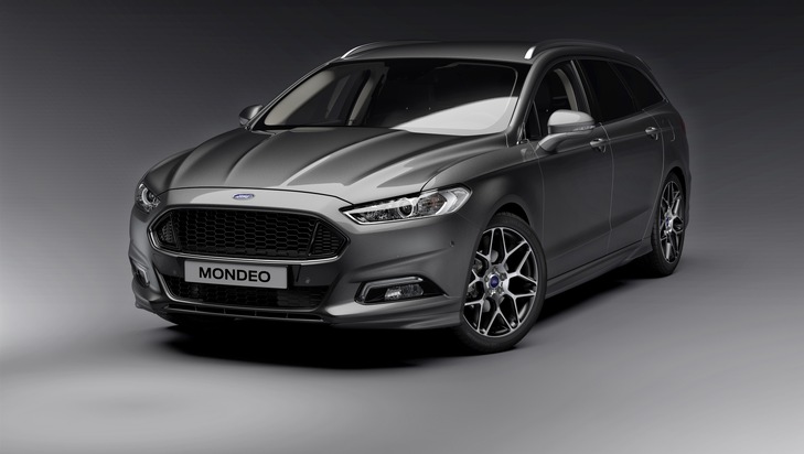 Auch der neue Ford Mondeo zeigt sich in der Ruhrmetropole so sportlich wie nie und mit attraktiven Ausstattungsoptionen, die ab sofort verfügbar sind. Hierzu gehört etwa das für den Mondeo Trend und Titanium optional erhältliche LED-Tagfahrlicht. Harmonisch in die neu gestalteten, nunmehr rechteckigen Nebelscheinwerfer integriert, greift es die Designsprache der Hauptscheinwerfer auf. Nach der Limousine bietet Ford nun auch für die Kombiversion Turnier einen eleganten Dachspoiler an. Er komplettiert den betont sportlichen Auftritt des optionalen Design-Pakets III. Optisch hierzu passend und ebenfalls neu im Programm für den Mondeo sind schwarz lackierte 19-Zoll-Leichtmetallräder im 7x2-Speichen-Look mit besonders hochwertiger, da glanzgedrehter Oberflächenveredelung. Und auch im Interieur wartet der Mondeo mit einer Neuheit auf: Die Ausstattungslinien Trend und Business Edition können um eine sportlich-elegante Leder-Stoff-Polsterung in Anthrazit erweitert werden.