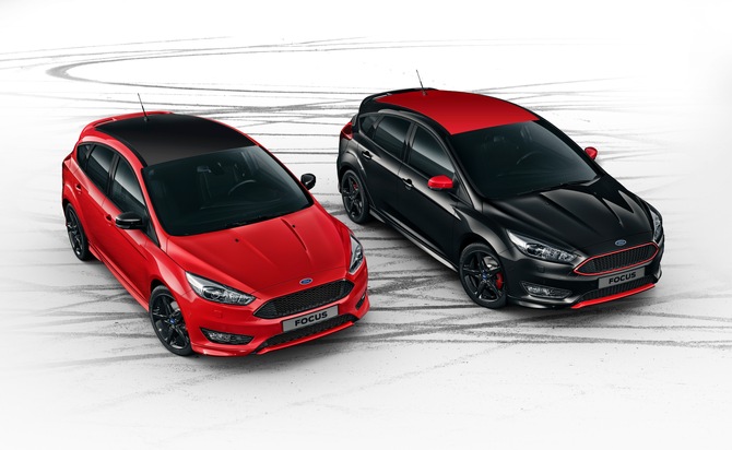 Der neue Ford Focus Sport erweitert die Familie der Ford-Fahrzeuge mit auffälliger Kontrast-Lackierung und einem betont sportlichen Auftreten. So gibt es zum Beispiel den Ford Ka als "Black & White Edition" sowie als "Red & Black Edition" und der Ford Fiesta ist in der Ausstattungsversion "Sport" verfügbar, das heißt: ebenfalls wie der Ford Focus Sport in einem spektakulären Zwei-Farb-Design (rot/schwarz beziehungsweise schwarz/rot).