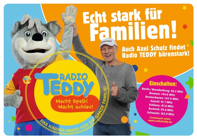 In den kommenden Wochen sind auch Anzeigen- und Großflächen-Kampagnen mit Axel Schulz in allen Radio TEDDY-Sendegebieten geplant. Mehr Informationen unter www.radioteddy.de