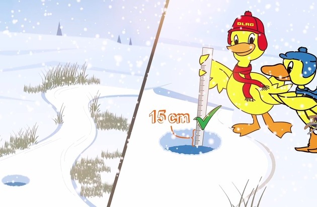 Die wichtigsten Regeln für das Verhalten auf dem Eis hat die DLRG jetzt in einem Animationsfilm zusammengestellt. Diesen gibt es im Internet unter www.dlrg.de/tube (Link zum Einbetten: https://youtu.be/_mgynSbLBio ).