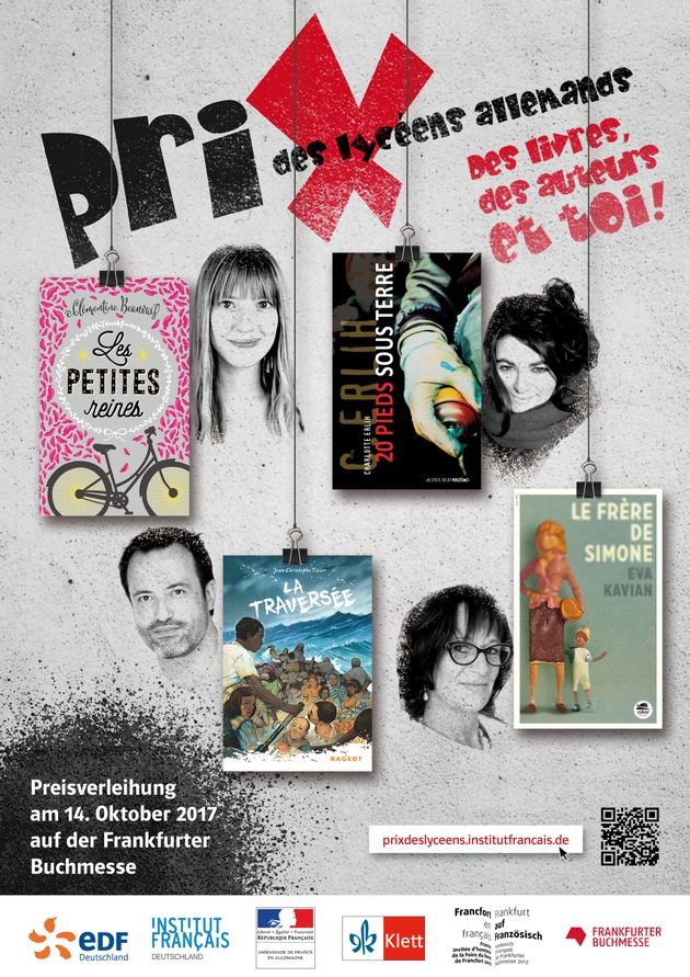 Für das Jahr 2017 sind vier Romane der neueren französischen Jugendliteratur nominiert: - Les petites reines von Clémentine Beauvais - 20 pieds sous terre von Charlotte Erlih - La Traversée von Jean-Christophe Tixier - Le frère de Simone von Eva Kavian