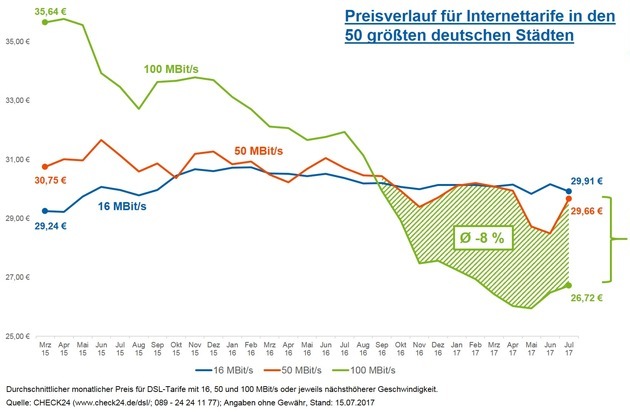 Highspeed-Internet durchschnittlich 25 Prozent günstiger als im März 2015