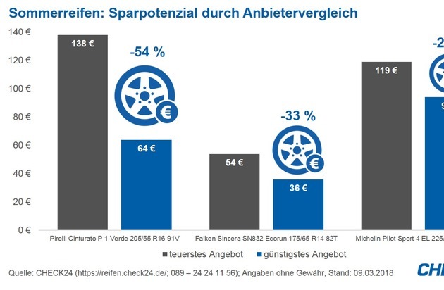 *)CHECK24 Reifen Preisvergleich: https://reifen.check24.de/; Stand aller genannter Preise: 09. März 2018