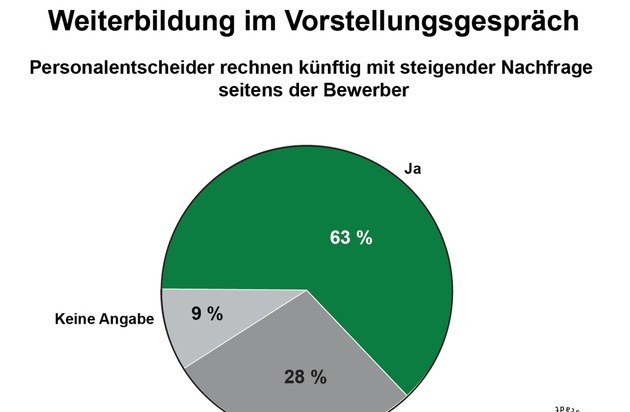 Und so wird, wie die Studie zeigt, das Weiterbildungsangebot eines potenziellen Arbeitgebers von den Bewerbern oft auch schon im Vorstellungsgespräch thematisiert. "Heute können viele Bewerber aus mehreren Jobangeboten wählen. Während Vorstellungsgespräche früher dem Zweck dienten, sich als Bewerber dem potenziellen Arbeitgeber zu präsentieren, müssen sich heute auch die Unternehmen in den Gesprächen attraktiv darstellen", ergänzt Vollmer. 63 Prozent der HR-Experten gehen davon aus, dass in Vorstellungsgesprächen das Thema Weiterbildung seitens der Bewerber künftig noch an Bedeutung gewinnen wird.
