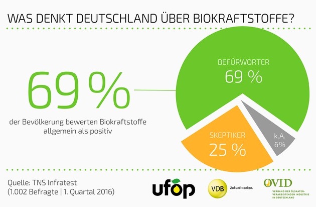 Die repräsentative TNS Infratest-Umfrage wurde im Auftrag folgender Verbände der deutschen Biokraftstoffbranche durchgeführt: der Union zur Förderung von Oel- und Proteinpflanzen (UFOP), dem Verband der Deutschen Biokraftstoffindustrie (VDB) und dem Verband der ölsaatenverarbeitenden Industrie in Deutschland (OVID).