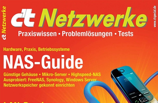 Das c't-Sonderheft "Netzwerke" hilft, die persönliche Umstiegsstrategie zu finden und sich in der VoIP-Welt mit den passenden Geräten einzurichten. Das zweite Schwerpunktthema widmet sich den Netzwerkspeichern (NAS). c't zeigt, wie man mit den schlauen Vorratskammern preisgünstigen und schnellen Speicherplatz für Kameras, Smartphones, Medien-spieler und Fernseher im eigenen Netzwerk einrichten kann.