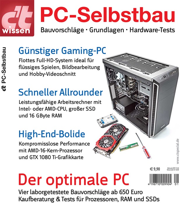 Das Sonderheft c't wissen PC-Selbstbau ist im Zeitschriftenhandel oder online im heise shop für 9,90 Euro erhältlich. Als eBook kostet es 8,99 Euro.