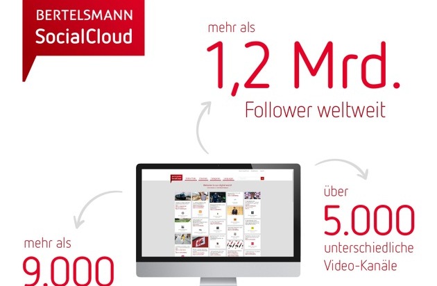 Gebündelt wird die Social-Media-Welt von Bertelsmann auf einer eigenen Website - der Social Cloud (socialcloud.bertelsmann.com). Inzwischen können Nutzer hier in mehr als 9.000 unterschiedlichen Kanälen stöbern oder sich gezielt an der thematischen Sortierung orientieren. Die Bandbreite reicht von Modetipps über aktuelle News, Angebote für Kinder und Musikvideos bis zu Kochrezepten und Literaturempfehlungen. Die Mehrzahl der Nutzer greift dabei auf englischsprachige Angebote zu, auch die Nachfrage nach spanischen Inhalten wächst stark. Mit über 70 Millionen Nutzern deutschsprachiger Angebote erreicht Bertelsmann auch im heimischen Markt ein großes Publikum.