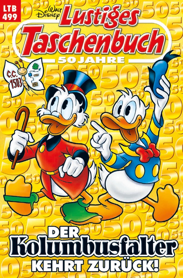Registrieren Sie sich im Presseportal für den Presseraum Lustiges Taschenbuch. Dort finden Sie unter anderem Cover, ausgewählte Panels, freigestellte Charaktere und exklusives Bildmaterial aus dem aktuellen Band 499, der Fortsetzung des legendären ersten Bandes aus dem Jahr 1967, "Der Kolumbusfalter".
