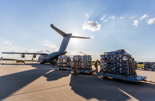 Die Deutsche Luftwaffe fliegt im Auftrag des European Air Transport Command (EATC) für die Niederlande Hilfsmaterial in das Katastrophengebiet. Das Material aus dem Nachbarland soll möglichst schnell in die Region gebracht werden.